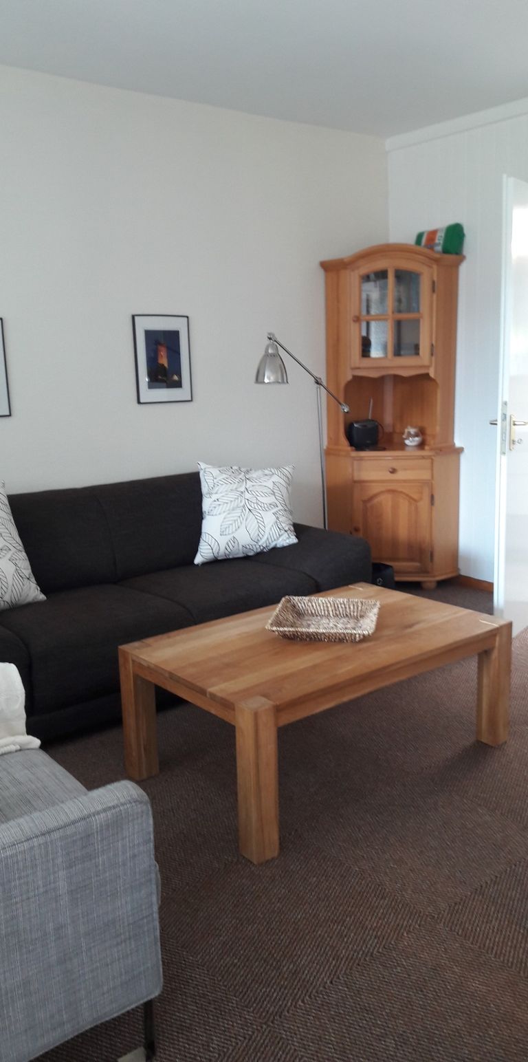Machen Sie es sich bequem auf dem Sofa zum TV. Ein Esstisch mit vier Stühlen steht zur Verfügung.